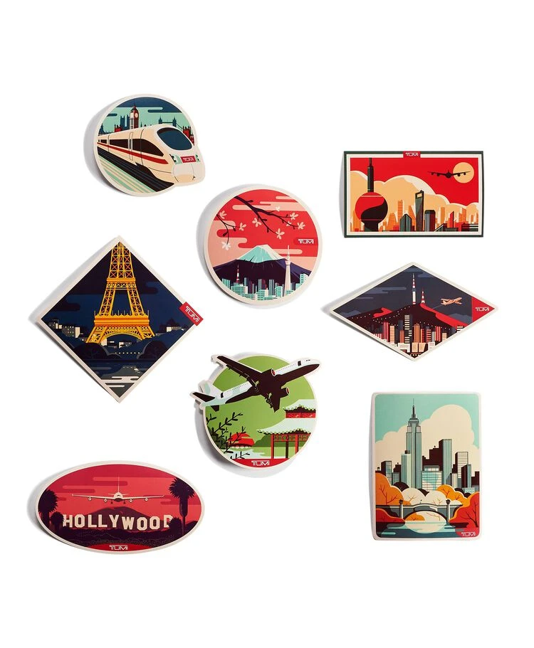 - Vintage-inspired destination stickers included